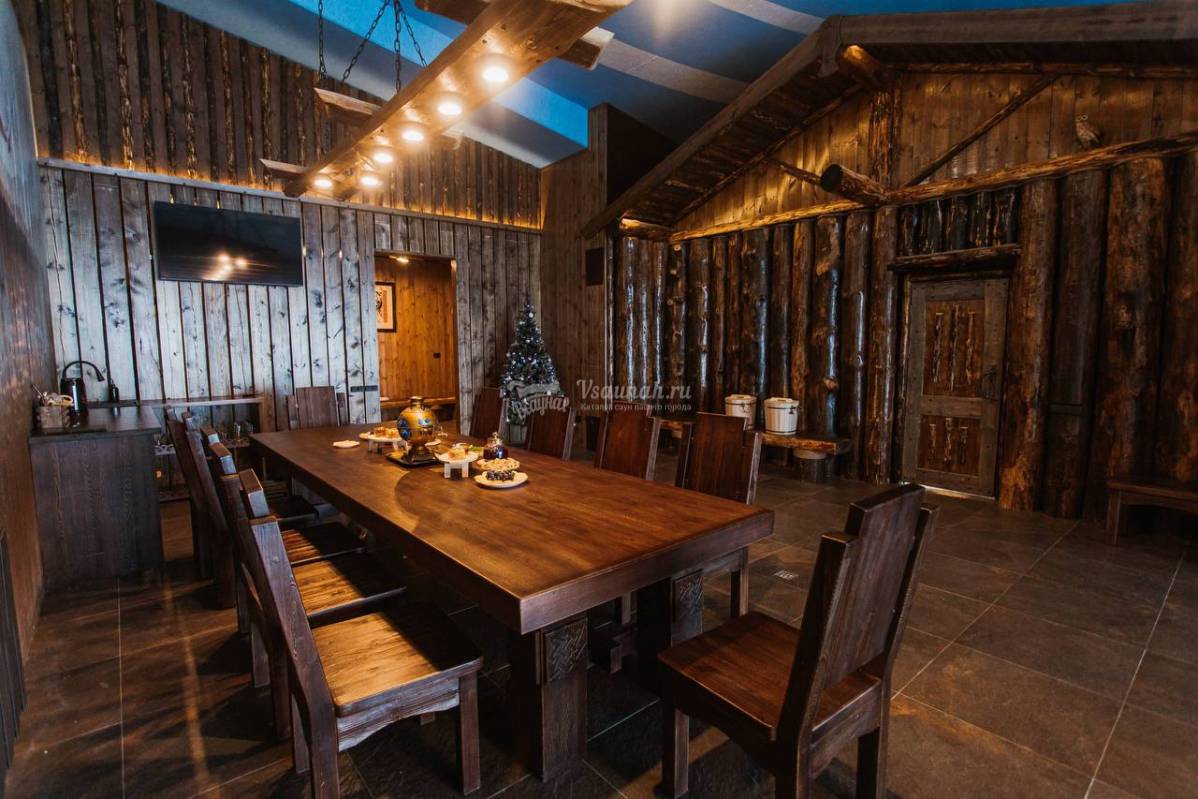 Кроме того, в зависимости от выбранного номера гости бани смогут насыщенно провести время за игрой на бильярде, спеть караоке, потанцевать под светомузыку, а также воспользоваться находящимся под открытым небом уникальным банным чаном.